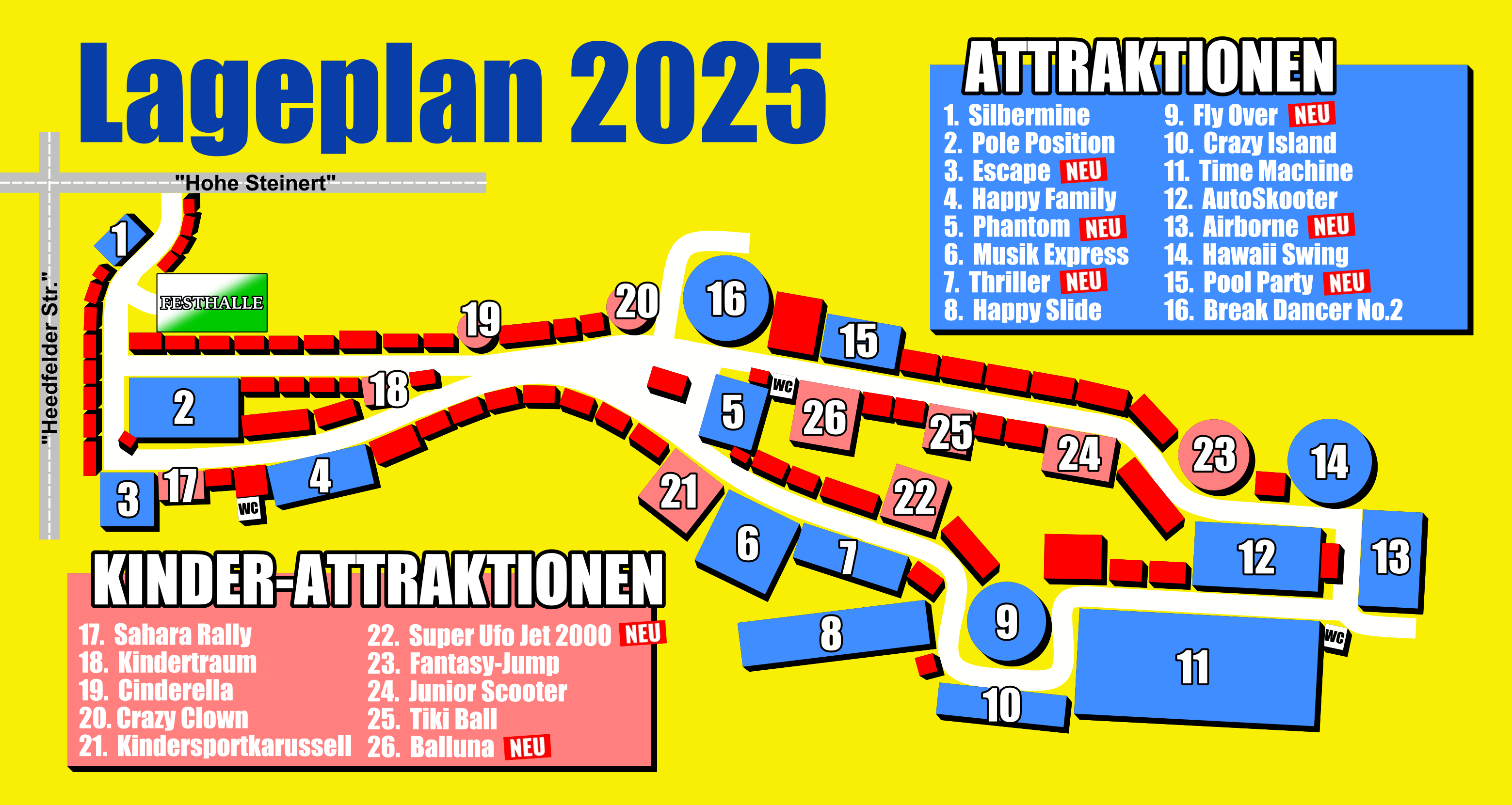 Der Lageplan zur Orientierung auf dem Kirmesgelände der Steinert Kirmes 2025!